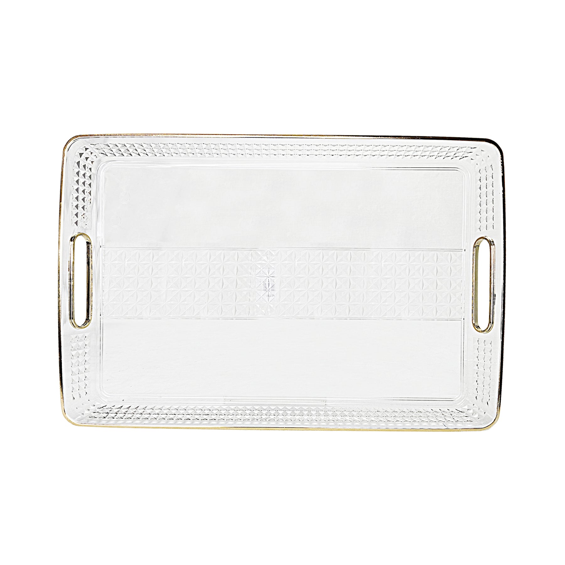 Size: 25 x 37.5 cm Available in Clear With Gold Edge Only.Made Out of Strong Durable Plastic.