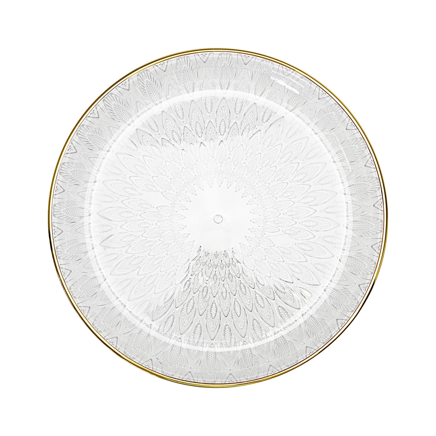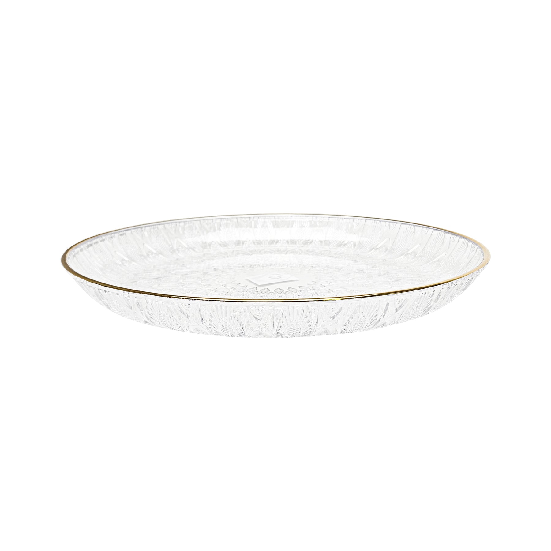 Size: 35 cm (Dia)Available in Clear With Gold Edge Only.Made Out of Strong Durable Plastic.