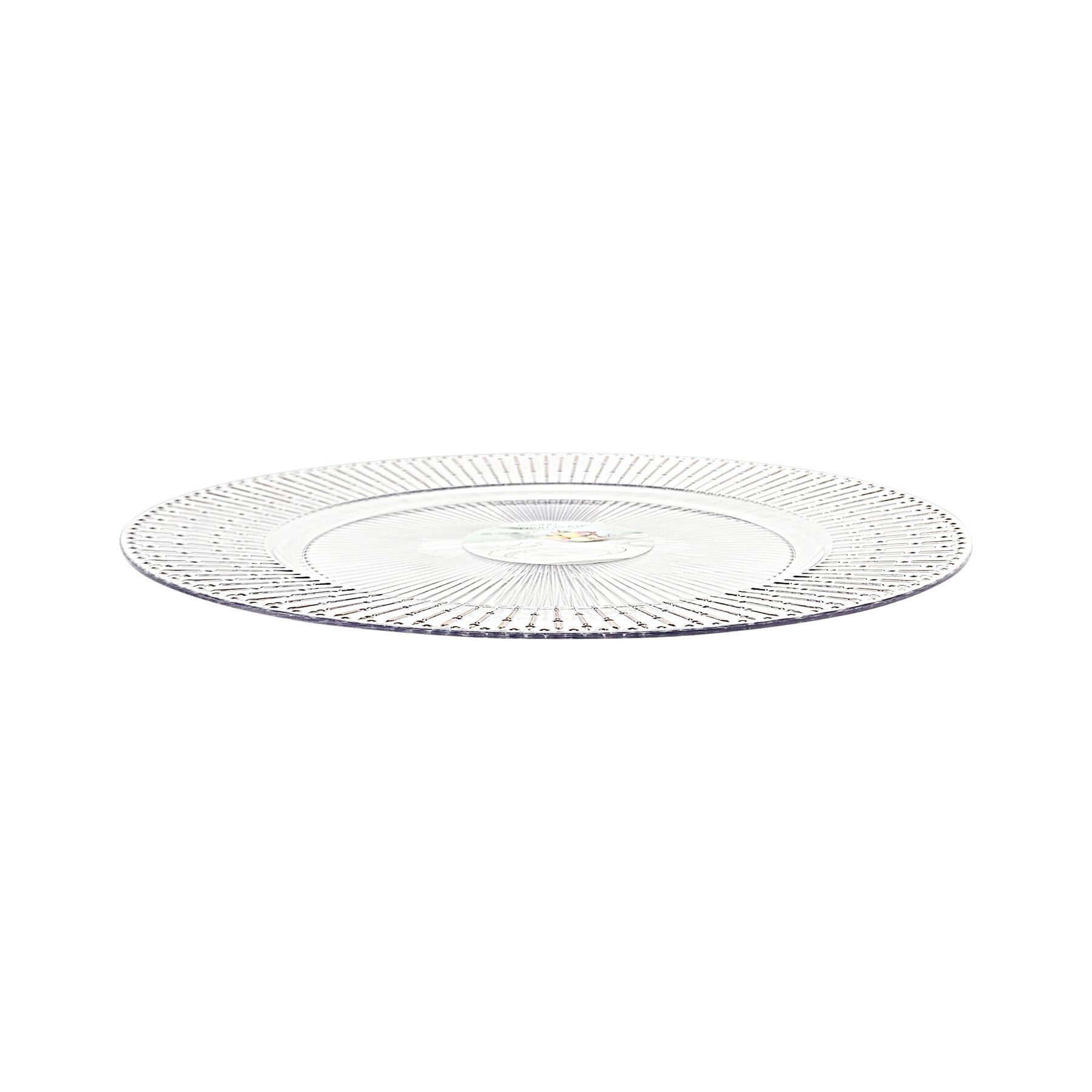 Size: (Dia) 33 cmAvailable in Clear With Gold Edge Only.Made Out of Strong Durable Plastic.